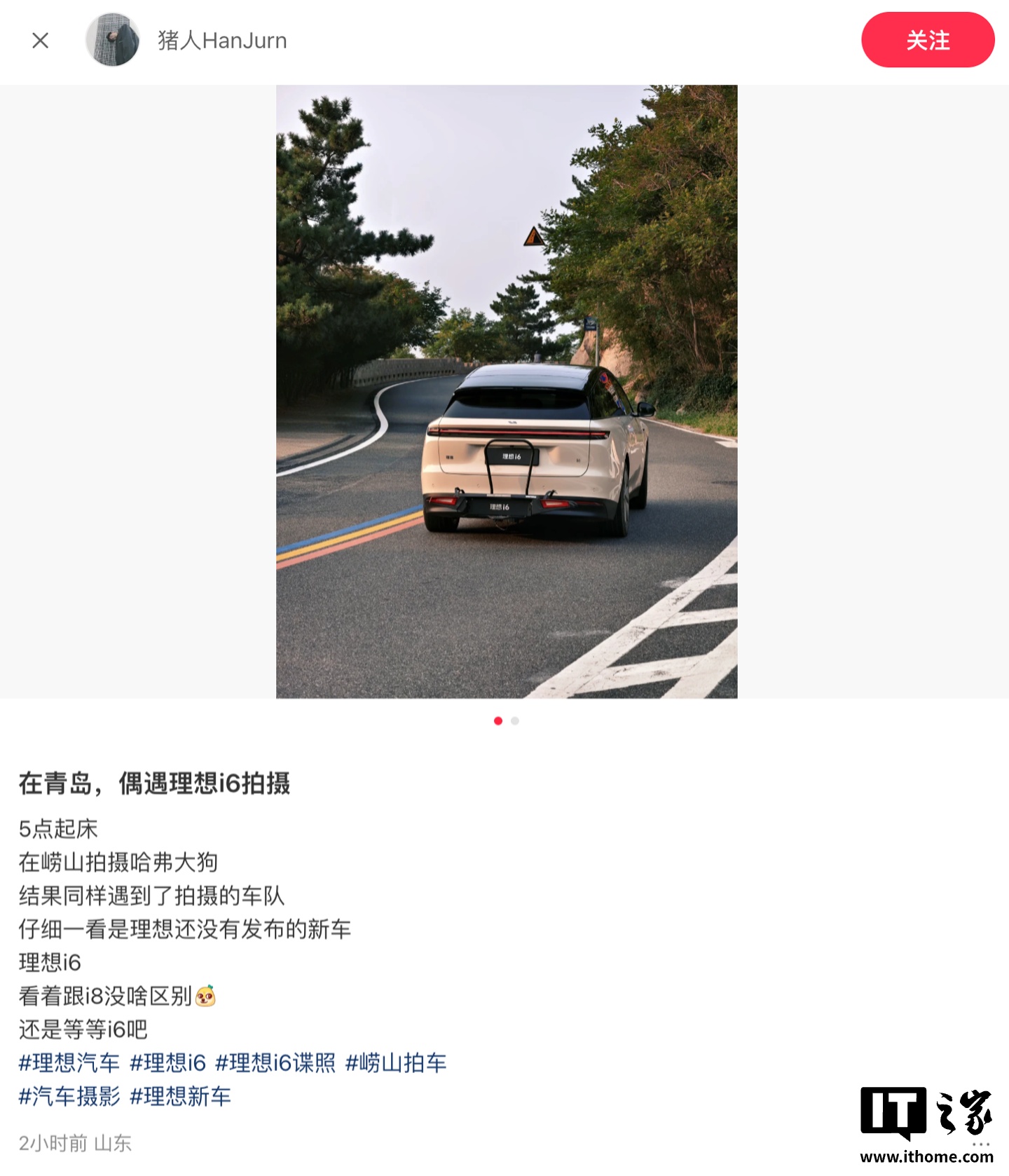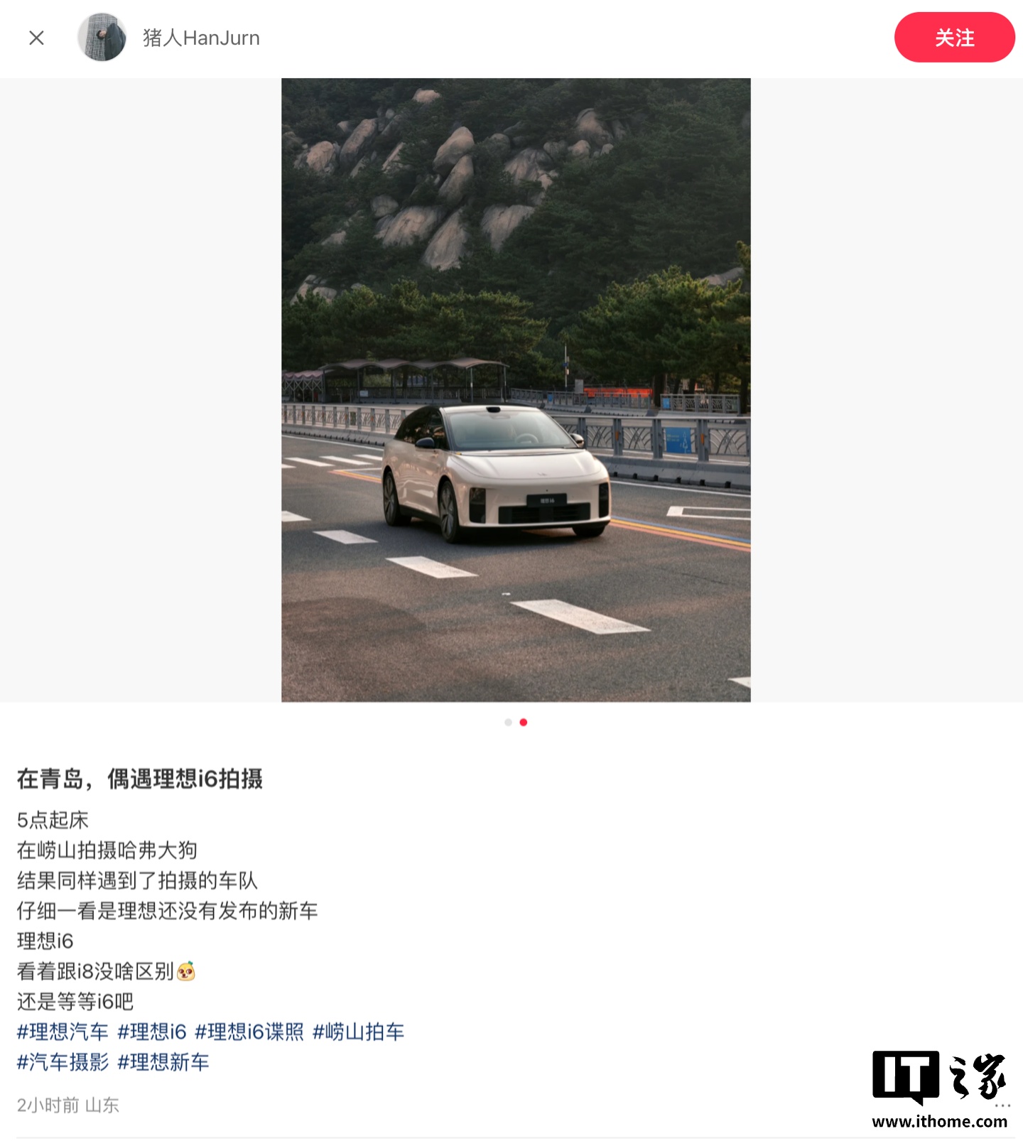 IT之家 8 月 29 日消息,小红书博主“猪人 HanJurn”今天发文称,自己在青岛偶遇理想未发布的新车 —— 纯电 SUV i6。